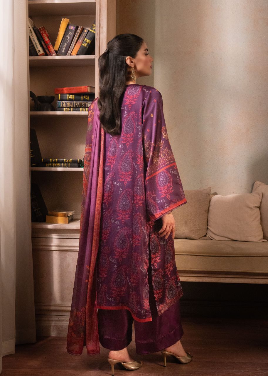 3 PCS SUIT MAROON SILK PRINTED LDS-7152